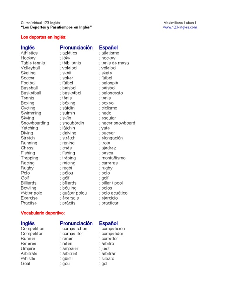 View Deportes En Ingles Y Español Y Pronunciacion Pictures. Lista de los 20 nombres de deportes en inglés y español ⛳. 20 ejemplos oraciones con going to en inglés y español.